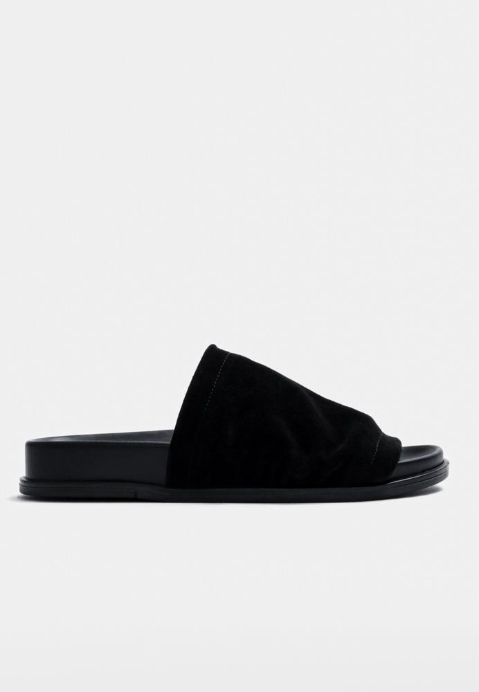 Paula sandalen i sort er lavet i olieret ruskind med læderfoer og gummisål. En enkel og komfortabel sandal.
