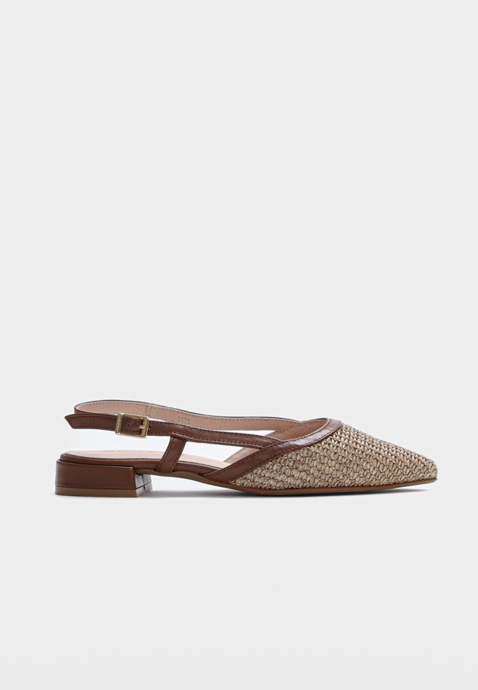 Texture meets structure. Elora i tan mixer flettet front med skarpe læderdetaljer. En laid-back sandal med fashion edge ? perfekt til varme dage med stil.