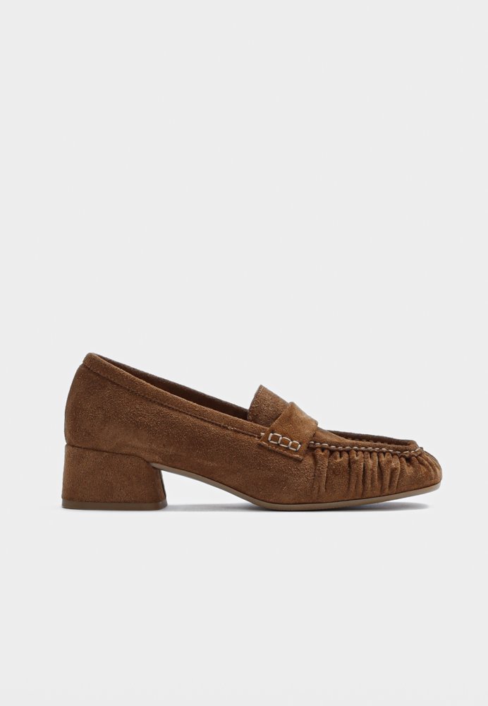 Stilren og feminin loafer designet i lækkert ruskind med smukke håndsyede detaljer. Den lille blokhæl giver et løft uden at gå på kompromis med komforten, og den enkle silhuet gør skoen nem at style til både jeans og kjoler. Et alsidigt valg til en moderne garderobe.